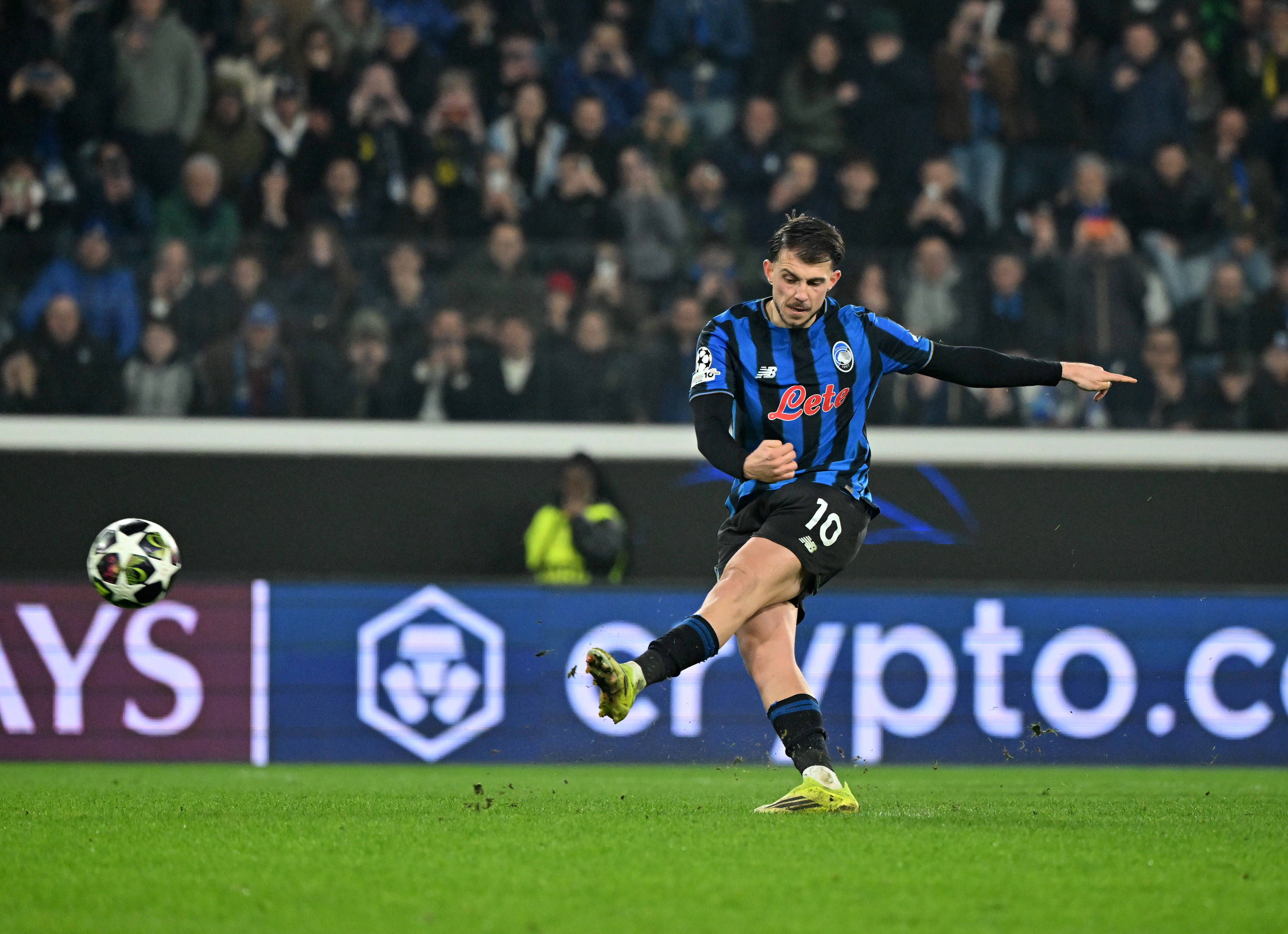 2月25日,亚特兰大队球员萨马尔季奇在比赛中罚中点球。 新华社发(阿尔贝托·林格利亚摄)