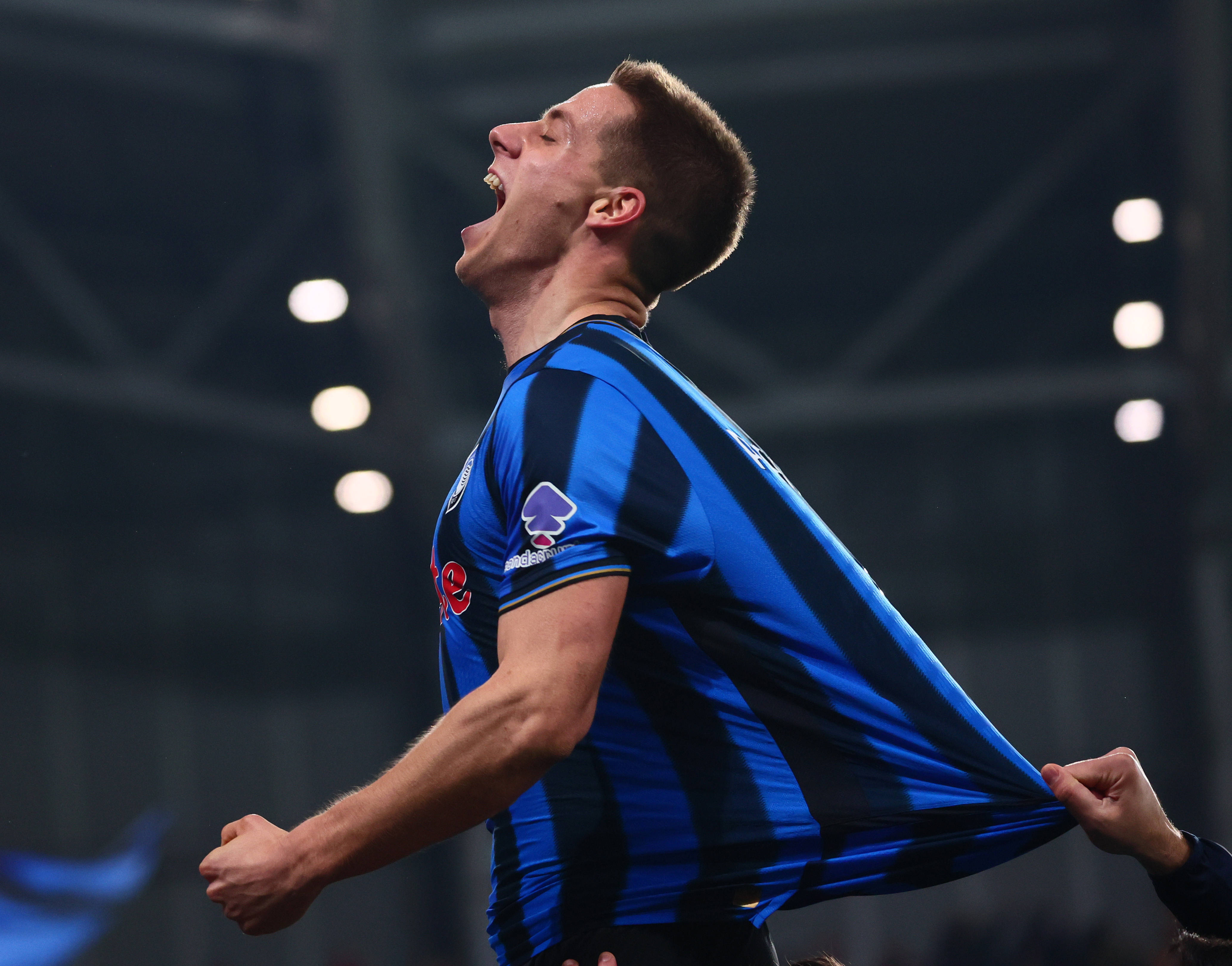 2月25日,亚特兰大队球员帕萨利奇庆祝进球。 新华社发(阿尔贝托·林格利亚摄)