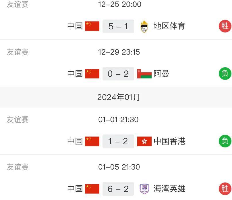 回顾中国男足近期的表现,过去的四场友谊赛中他们赢得了两场,却也输掉了两场。令人担忧的是,这两场胜利都是来自不太出名的联赛队伍,而输球的对手却包括阿曼队和中国香港队。这种状态让球迷们对国足的表现产生了担忧,对于国足现在的实力和状态,他们表达出了一些不安。