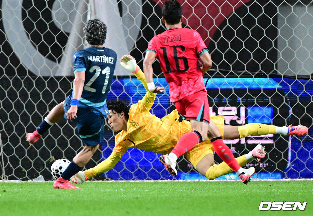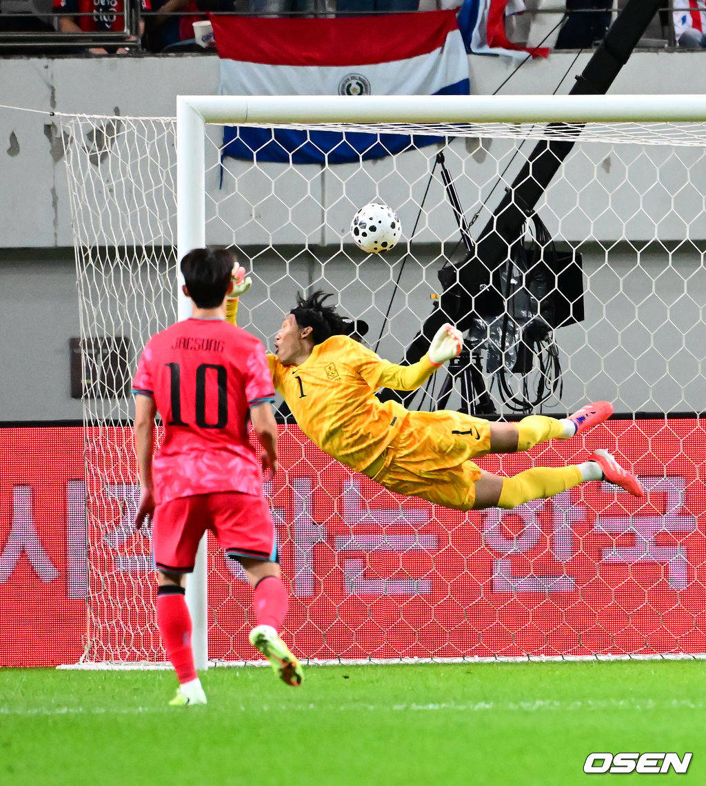 第66分钟,洪明甫用元斗载换下黄仁范,老将李在城替下进球功臣严智星,这也意味着洪明甫希望韩国队“鸣金收兵”,试图守住1-0的胜果。而这个变化,也让巴拉圭队看到了机会,他们不断利用元斗载的漏洞和金玟哉、曹侑珉的“冒失”上抢寻求机会。除了任意球打飞外,巴拉圭获得了两次单刀球一对一面对门将的机会,但都打飞。而韩国队的后防线在面对对手的射门时,显得格外慌乱,如果不是对手射术不精,恐怕比分已经被改写。