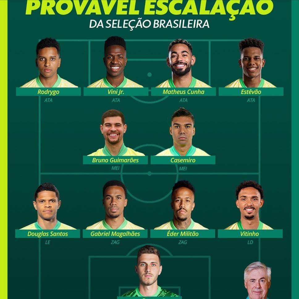 反观巴西队,安切洛蒂的执教艺术在此役得到了淋漓尽致的展现。尽管这是他首次执教国家队,但其 4-2-3-1 的阵型调度,攻守均衡,星光璀璨得令人目眩。门将位置上,由 C 罗在利雅得胜利的队友本托镇守。后防线,道格拉斯·桑托斯与维蒂尼奥攻守兼备,而米利唐和加布里埃尔的中卫组合则如磐石般稳固。中场核心毋庸置疑是卡塞米罗,他与吉马良斯一同坐镇后腰,攻防转换的速度快如闪电。前场,维尼修斯、罗德里戈、埃斯特旺以及库尼亚组成的攻击线,任何一人拿球都能瞬间制造威胁。