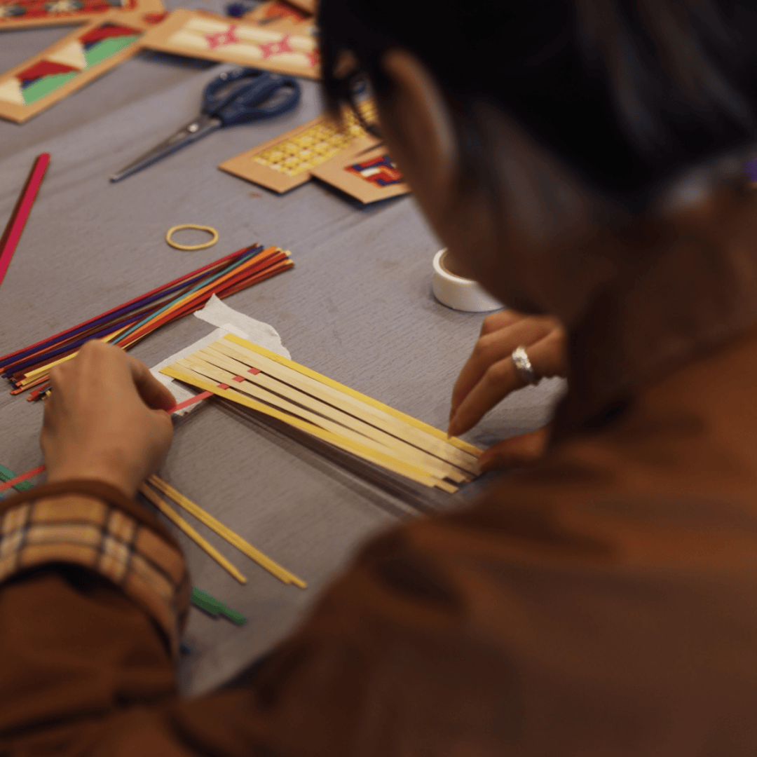 活动简介:本次活动以“竹编杯垫”为核心,解读竹子的“实用与美学共生”精髓,介绍竹编工艺与生活器物的关联脉络,展示不同地域风格竹编杯垫精品及图案美学逻辑。现场由专业老师示范竹材裁剪、基础编织、锁边收角等杯垫制作全流程,讲解关键要点与安全事项;参与者在掌握基础规律后动手实践,自选图案设计编织专属竹编杯垫。
