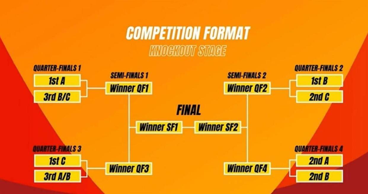 淘汰赛阶段的赛程安排显示,获得A组第一的球队将在四分之一决赛中对阵B组或C组的第三名球队。 而如果获得A组第二,对手将是B组的第二名。 从目前各小组的积分情况看,B组和C组的第三名球队实力相对较弱,全部遭遇了两连败。