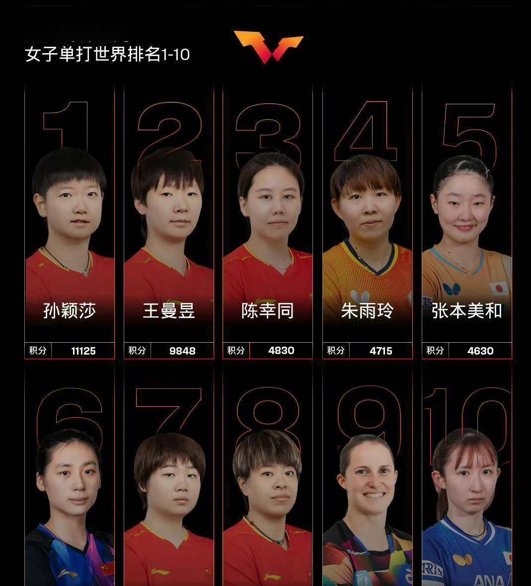 就在队伍紧锣密鼓备战的同时,国际乒联在4月20日公布了2026年第17周的世界排名。 男子单打方面,中国队球员王楚钦以11725分继续稳居榜首,断层式领先。 而他的队友林诗栋则从上一期的第五位下滑至第六位,积分为4961分。 另一位主力梁靖崑的排名下滑更为明显,从男单第15位跌至第21位,积分为1608分。 女单赛场,中国队依旧展现强大统治力,孙颖莎、王曼昱与陈幸同包揽前三。 但本期排名的一个显著变动是,蒯曼跌出了世界前五,被队友陈熠成功反超。 陈幸同第三的位置也并不稳固,朱雨玲、张本美和与她的差距就在一两百分。